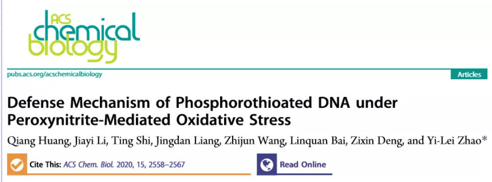 近日,性直播 代谢与发育科学国际合作联合实验室赵一雷教授课题组在DNA硫酰化修饰抵抗外源活性氧(ROS)机制研究中取得新进展,以“Defense Mechanism of Phosphorothioated DNA Under Peroxynitrite-mediated Oxidative Stress”为题,在美国化学会期刊《ACS Chemical Biology》发表Supplementary Cover Article论文。第一作者为博士生黄强,邓子新院士团队白林泉教授、汪志军副研究员和梁晶丹副研究员等参与本研究。