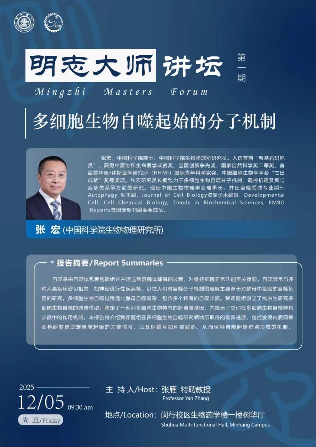 张宏,中国科学院院士、中国科学院生物物理所研究员。入选首期“新基石研究员”,获得中源协和生命医学成就奖、全国创新争先奖、国家自然科学奖二等奖、首届霍华德•休斯医学研究所(HHMI)国际青年科学家奖、中国细胞生物学学会“杰出成就”奖等奖项。张宏研究员长期致力于多细胞生物自噬分子机制、调控机理及其与疾病关系等方面的研究。现任中国生物物理学会理事长,并任自噬领域专业期刊 Autophagy 副主编,Journal of Cell Biology资深学术编辑,Developmental Cell, Cell Chemical Biology, Trends in Biochemical Sciences, EMBO Reports等国际期刊编委会成员。