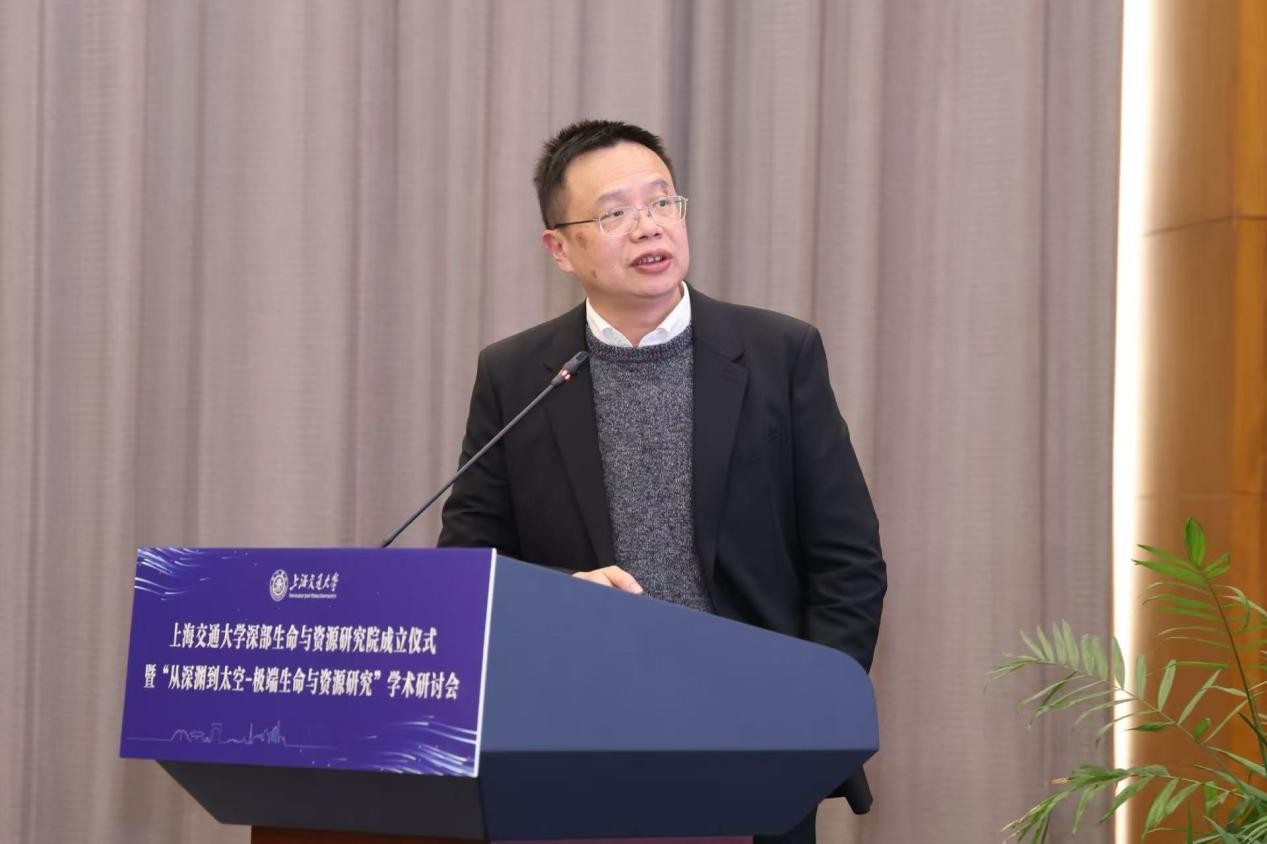 12月1日下午,性直播 深部生命与资源研究院成立仪式暨“从深渊到太空—极端生命与资源研究”学术研讨会在闵行校区文博楼会议中心举行。上海市科学技术委员会副局长级干部谢文澜,中国科学院院士赵国屏、翦知湣,上海尚思自然科学研究院院长鲁白、首席科学官李党生,中国极地研究中心原党委书记孙波,性直播 校长、中国科学院院士丁奎岭,副校长张兆国、曾小勤,医学院党委副书记吴正一,中国科学院院士、生命科学技术学院名誉院长邓子新,上海市科委、自然杂志、中国极地研究中心以及兄弟单位领导和专家,生命科学技术学院及学校相关二级单位、附属医院相关负责人和师生代表参会。成立仪式由张兆国主持。
