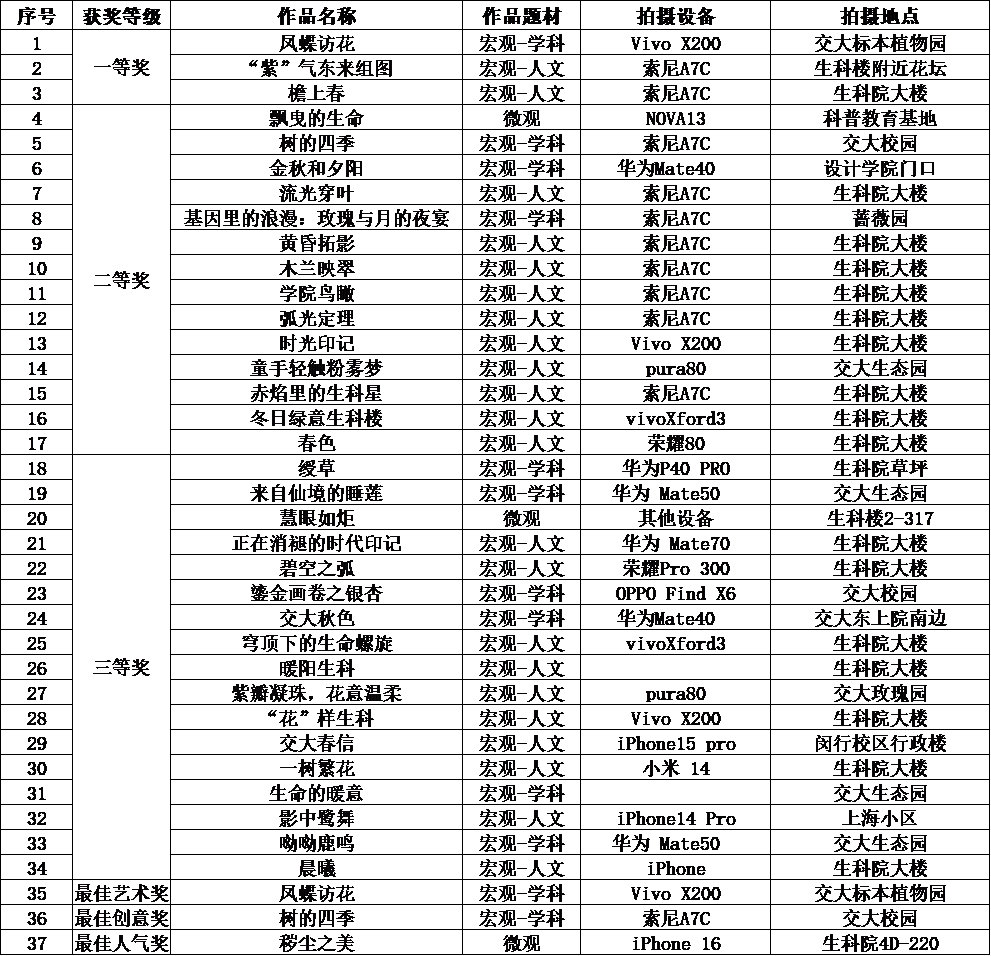生命科学技术学院“生科•光影之美”摄影大赛经过前期的作品征集,网上投票,专家会评等环节,已经圆满结束。本次比赛共收到三十余位老师提交的54幅作品,其中宏观50幅,微观4幅。由于微观作品数量太少,不再单独评奖,所有作品统一评奖。共评出一等奖作品3幅,二等奖作品14幅,三等奖作品17幅。获奖人员按获得的最高等级发放奖励,不重复发放。