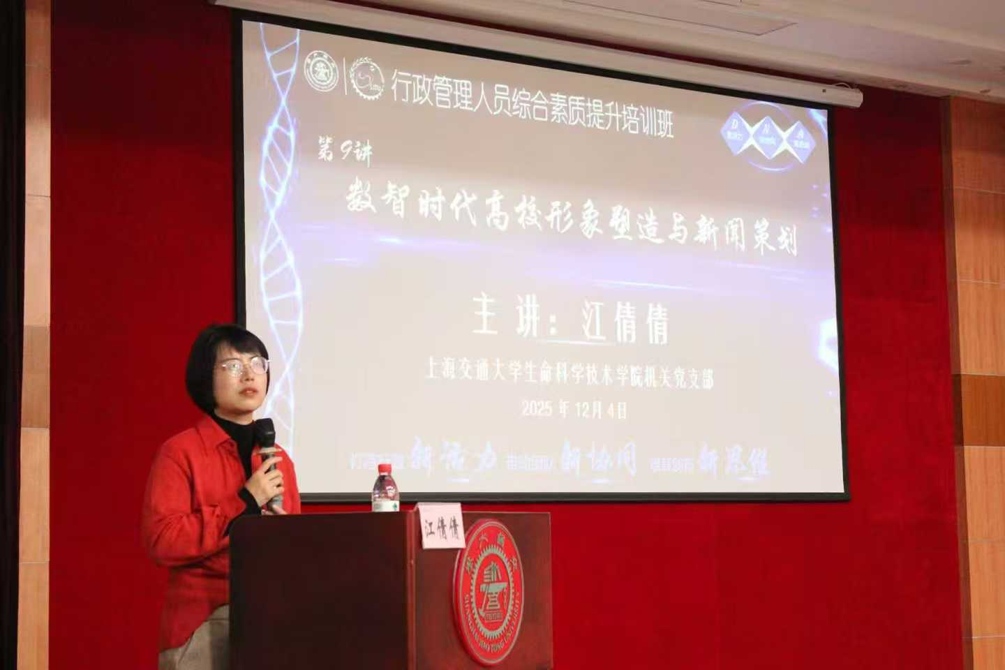 为深化党建与业务工作融合,切实增强行政人员在新媒体环境下的宣传履职能力,12月4日,生命科学技术学院机关党支部与药学院管理服务党支部联合开展“党建赋能行政管理,宣传聚力声量提升”主题党日活动,同期举办生命科学技术学院第九期“行政管理人员综合素质提升培训班”。学校党委宣传部性直播编委、外宣事务主任江倩倩老师应邀作专题辅导。生命科学技术学院党委副书记王鑫、张燕红,以及药学院管理服务党支部、生命科学技术学院机关党支部和行政团队、科研团队宣传专员等参加活动。活动由王鑫主持。