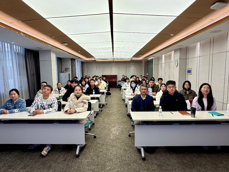 报告中,姜玉平围绕“十二年科学规划制定背景”“谱绘中国科技事业发展蓝图”“两弹:规划取得的标志性成就”“紧急措施:赶上信息技术革命”“结论与启示”五个核心部分深入阐释,为现场党员带来了一场兼具学术深度与思想温度的科技史讲授。姜玉平结合新中国成立初期的时代语境,系统梳理了规划制定的历史必然性,详细介绍了过渡时期总路线指引下,国家统筹科技发展、吹响“向科学进军”号角的时代背景,让党员们深刻理解了规划出台的战略考量与现实意义。姜玉平总结了十二年科学规划的历史经验与深远影响,指出这一规划不仅补全了我国学科门类、拉近了与世界先进科技水平的距离,更孕育了宝贵的科学精神与创新基因,为新时代推进科技自立自强提供了重要借鉴。