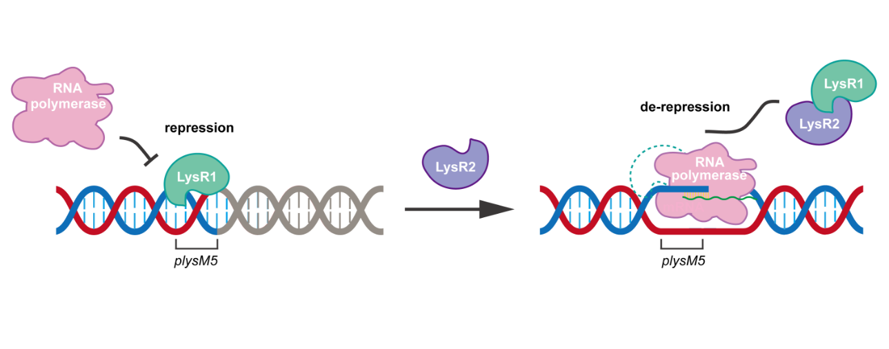 图1 TenA家族蛋白LysR2介导的转录调控模型