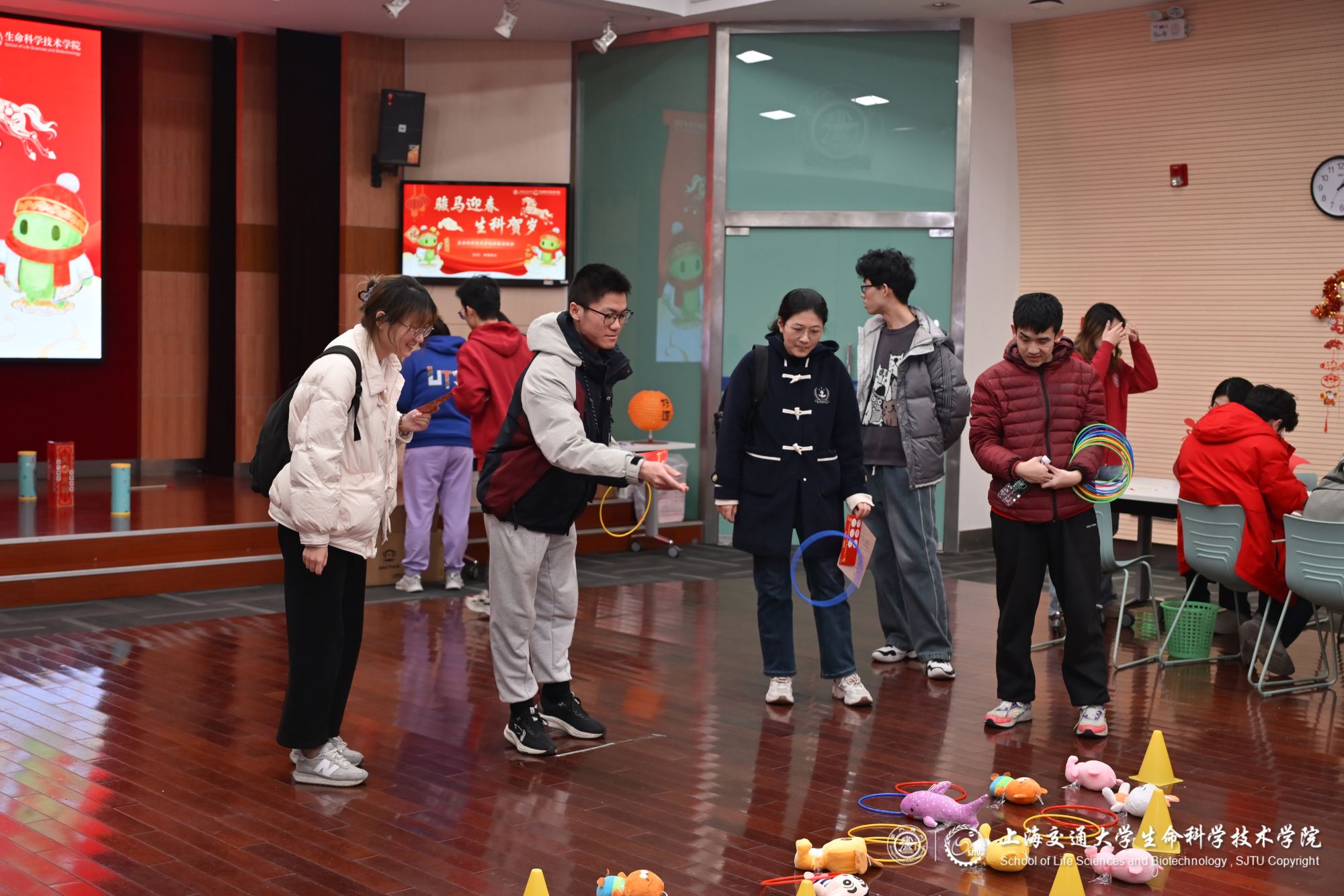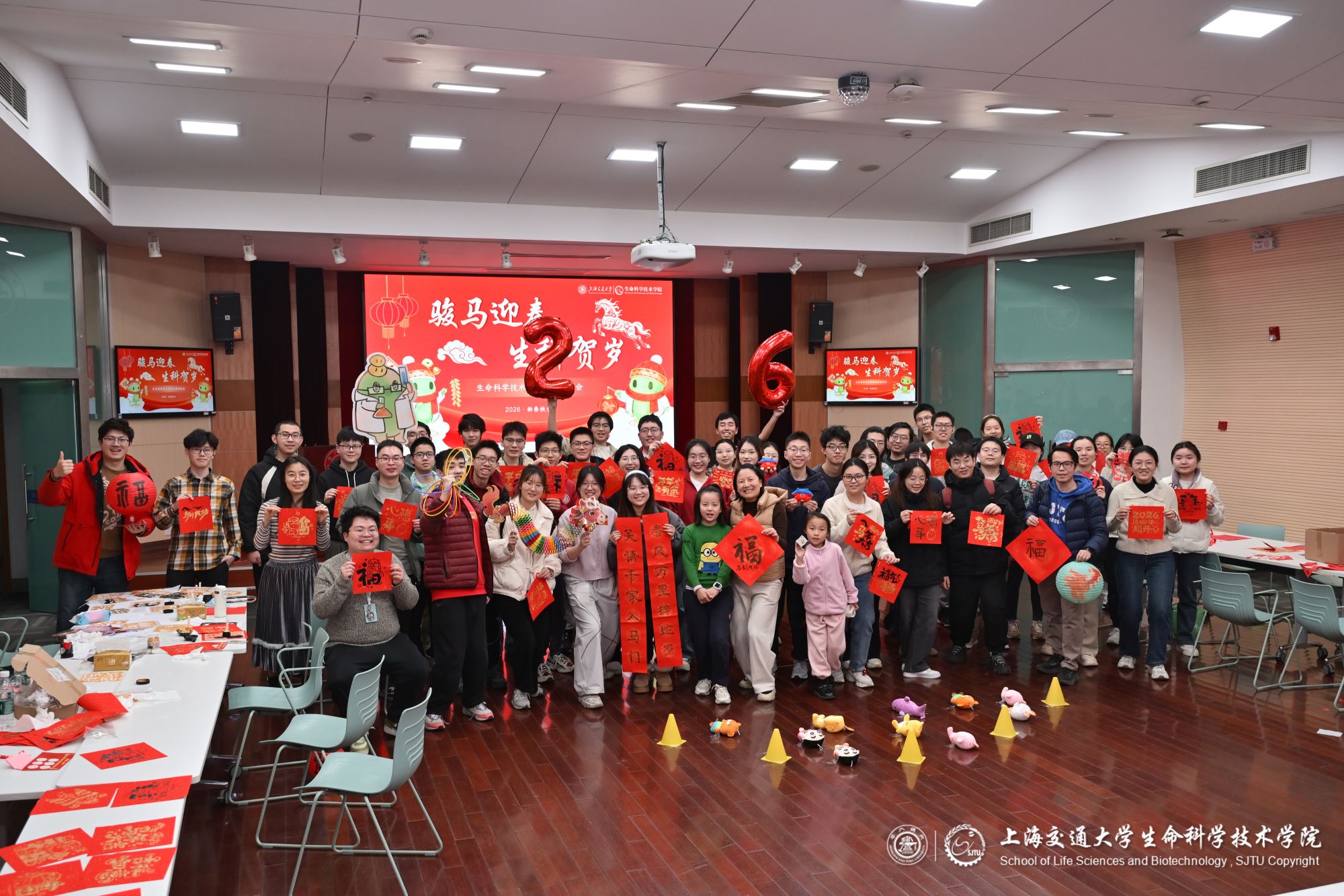 马蹄声声辞旧岁,策马扬鞭迎新春。2026年春节前夕,生命科学技术学院在生命药学楼树华多功能厅和大厅隆重举办新春游园会,学院党委副书记张燕红、学生办主任宋奕青、思政教师、辅导员与学生们欢聚一堂,在欢声笑语中参与游园活动,共迎新春。